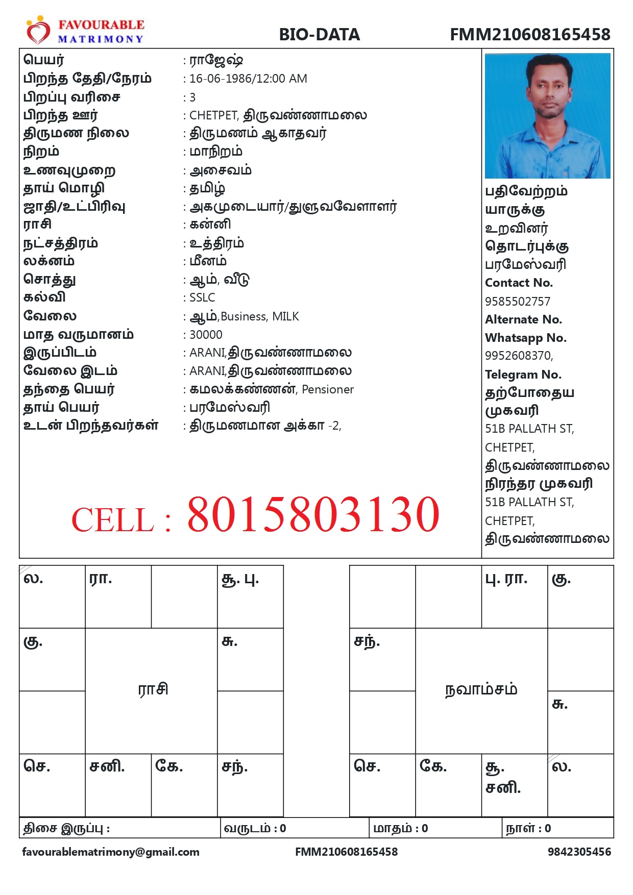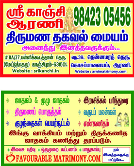 இணையதள திருமண தகவல் மையம் குறைந்த செலவில் நிறைந்த பயன் திருமணம் முடியும் வரை ஒரு முறை கட்டணம். (Awareness matrimony) வரன் முடிந்தவுடன் எங்களுக்கு தெரியபடுத்தவும். எந்த புதுப்பித்தல் கட்டணமும் இல்லை